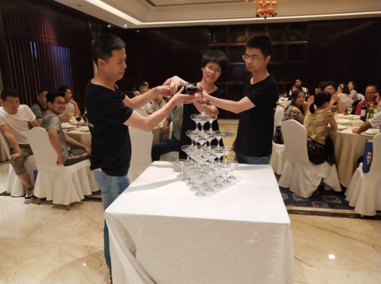 緊接著由金辰軟件合伙人倪小紅女士、李家駒先生和李總一起手捧巨大香檳,向香檳酒塔倒入這15年的美好回憶。晶瑩剔透的香檳酒塔,象征著15年來與客戶共建的累累碩果,層層塔尖象征著一個(gè)公司的前進(jìn)階梯,大家舉起了手中的酒杯,