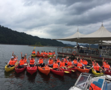 第三個(gè)篇章為騎行、皮劃艇的項(xiàng)目,意在挑戰(zhàn)不可能,克服內(nèi)心的恐懼。伴隨著千島湖的湖光山色,清風(fēng)拂面,美景盡收眼底;汗水打濕了衣背,疲累漫延至整個(gè)身體,卻依然奮力蹬踏,絕不拖團(tuán)隊(duì)后腿,小身軀卻發(fā)揮大能量。結(jié)束后,很多人感慨到:真沒想到我可以堅(jiān)持下來、我竟然不是最后一個(gè)…….