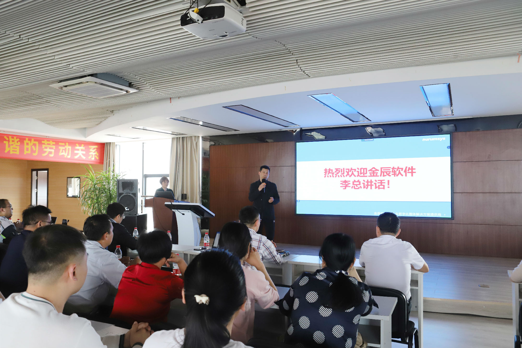 隨后,金華金辰軟件李總致辭中表達了完成該項目的信心與決心,李總認為信息化實施不僅僅是企業(yè)應用系統(tǒng)搭建信息化的過程,更是企業(yè)梳理流程、規(guī)范業(yè)務、改善管理的重要手段,是將軟件產(chǎn)品與企業(yè)業(yè)務結合的過程,可以幫助企業(yè)打造一支富有創(chuàng)新精神,精通企業(yè)管理與信息化的隊伍。