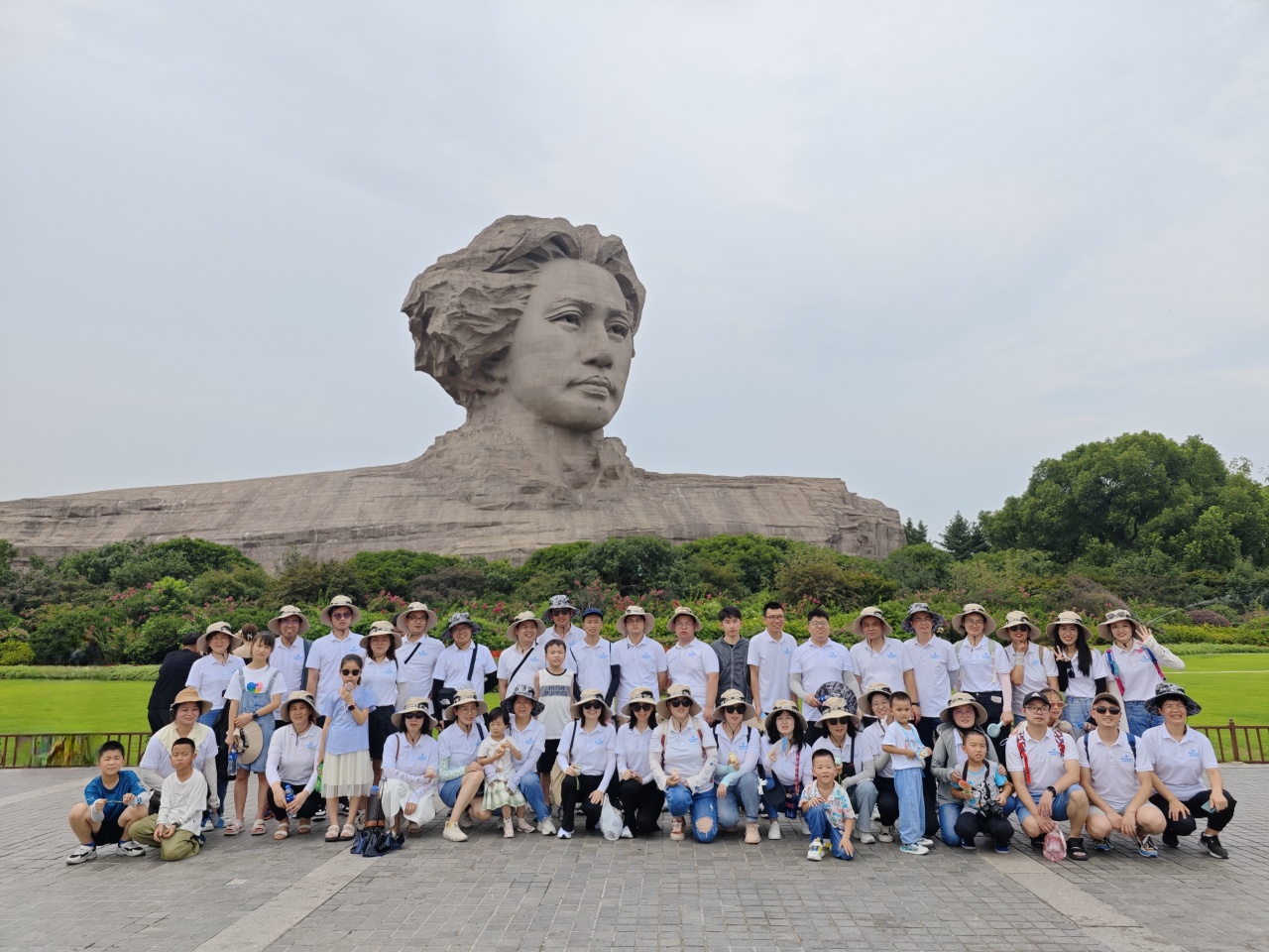 網(wǎng)紅城市長沙是第一站,大家乘坐電瓶車來到橘子洲頭,感受毛主席站在橘子洲頭發(fā)出的“問蒼茫大地,誰主沉浮”的天問,領(lǐng)略洲上的優(yōu)美景色。隨后大家一起在毛主席紀(jì)念雕像前留下合影。